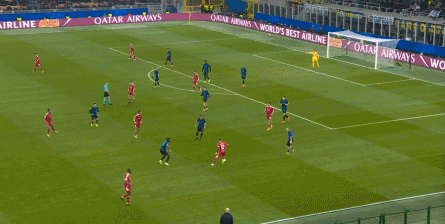齐沃在场边可能也看出了一些问题,加上先后因伤连换两人,势必影响到了下半场替补调整的计划之后,国际米兰的思路可能是在上半场末段尽力打出一些内容,所以在半场结束前,国际米兰的节奏大大加快,进攻手段也变得简单许多,所以形成了一些威胁: